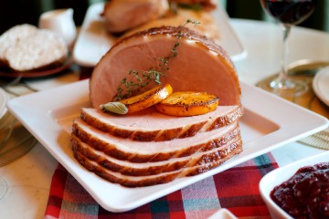 <p>Glazed Ham, served with winter roasted vegetables, mashed potatoes, stuffing, cranberry sauce, and our signature homemade gravy.<br>
